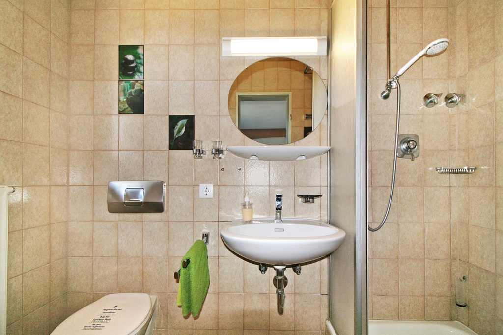 Das Dreibettzimmer mit Dusche/WC und -Flachbildschirm (SAT-TV) verfügt über ein Doppel- und ein Einzelbett.